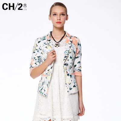 2014年虫二秋装新品蕾丝拼接帅气西装外套