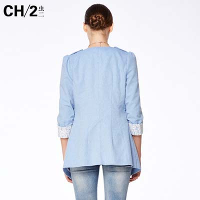 2014年虫二秋装新品蕾丝拼接帅气西装外套