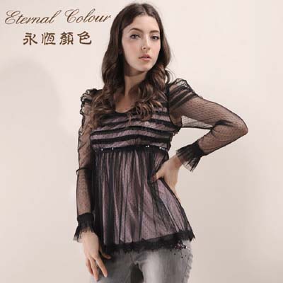 永恒颜色秋装蕾丝衬衫品牌女装长袖通勤上衣