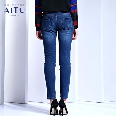 AITU 艾托奥冬季女装立体剪裁拼接塑形牛仔长裤
