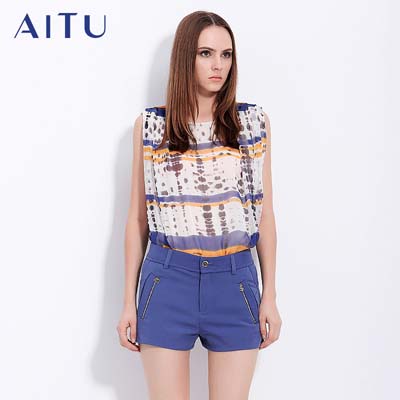 AITU 艾托奥水墨风彩印女装无袖衬衫