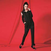 黑白伊人正品2014秋装新款韩版时尚休闲运动天鹅绒系列女套装
