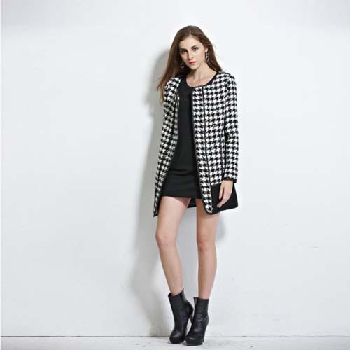 艾丽欣2014秋冬装长款格子呢大衣