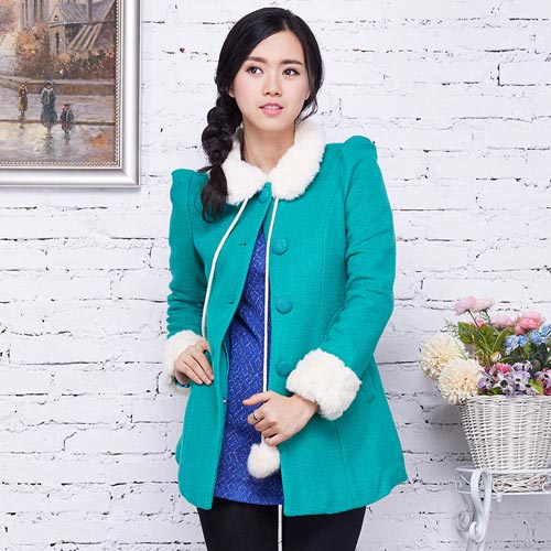 百馨娜2014冬装新款韩版修身毛领中长款呢大衣