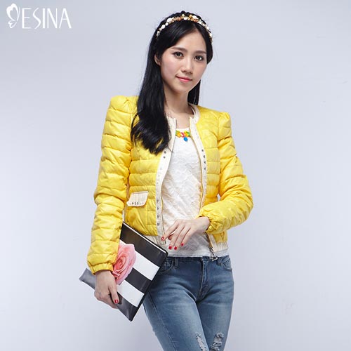 百馨娜 2014冬季纯色简约修身淑女棉服棉衣羽绒服