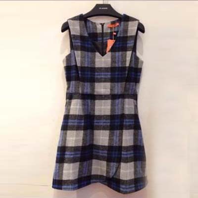 雅芙羊毛呢料格子收腰背心裙