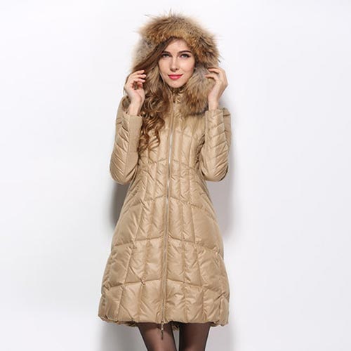 优美世界 2014冬季新品奢华貉子毛领带帽中长款修身保暖羽绒服