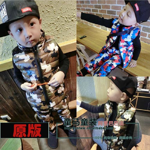 童马2014新款秋冬装韩版儿童装迷彩夹棉背心长裤2件套装小童宝宝马甲