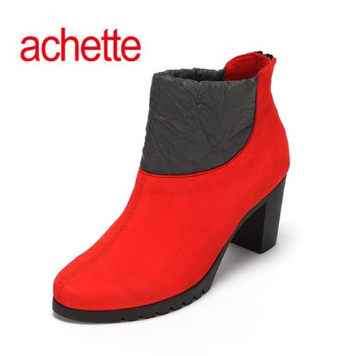 achette雅氏 2014秋冬新款5GK2高跟粗跟拼色时装靴