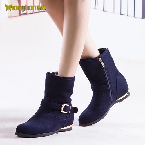 香恋2014雪地靴侧拉链女鞋英伦潮女短靴冬季新款平底内增高女靴子