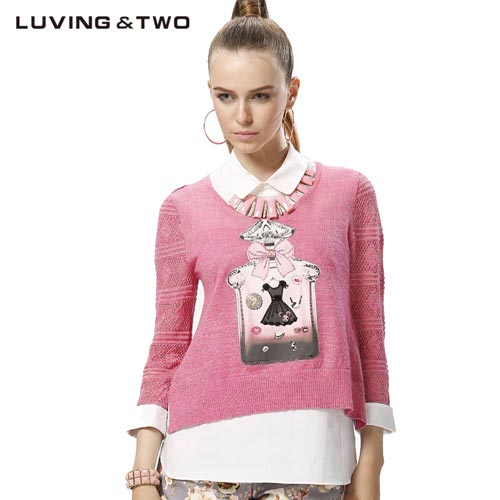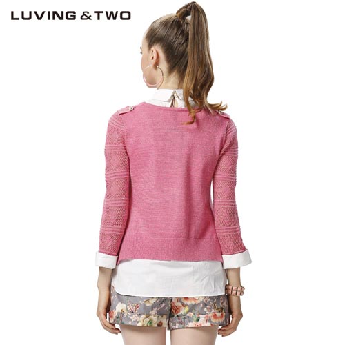 LUVINGTWO2014秋季新款专柜同款英伦假两件长袖毛针织衫