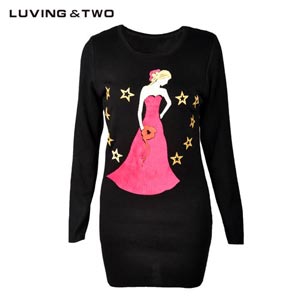 LUVINGTWO14冬季新款卡通图案加绒修身长袖毛织衫毛衫