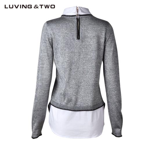 LUVINGTWO2014秋季新款专柜同款英伦假两件长袖毛针织衫