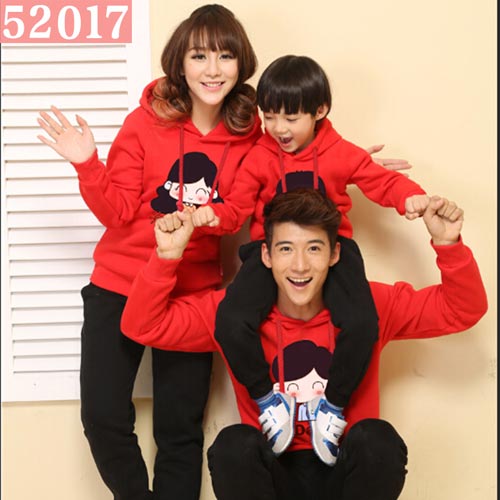 52017亲子装秋新款2014韩版外套一家三口纯色连帽套头亲子衫