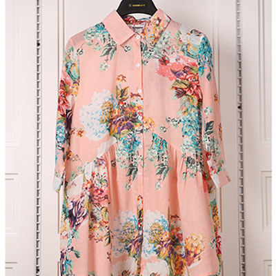 阳光名店2015新款韩版宽松小清新荷叶边时尚印花朵文艺中袖女衬衫