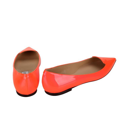 JIMMY CHOO周仰杰荧光橙色漆皮材质纯色简约女士平底休闲鞋