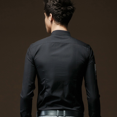 PINLI品立 2015春装新款时尚男装 微领长袖衬衫男修身衬衣潮