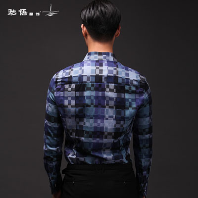 驰语男士衬衫长袖韩版修身格子衬衣精纺休闲男装加厚潮流秋装男