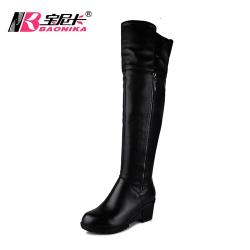 宝尼卡新款过膝长靴真皮长筒靴高筒靴冬季保暖棉鞋粗跟女靴