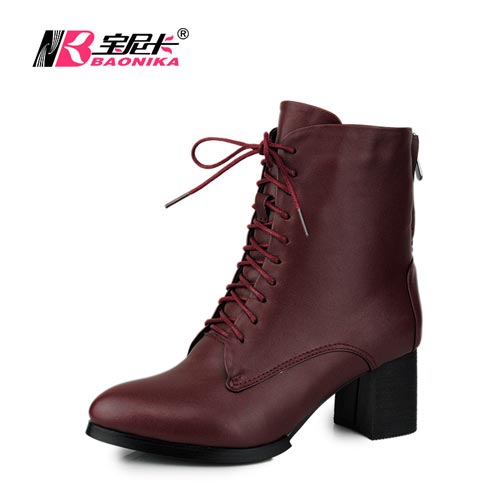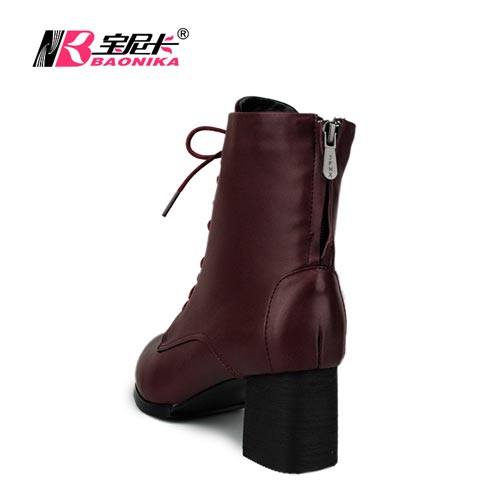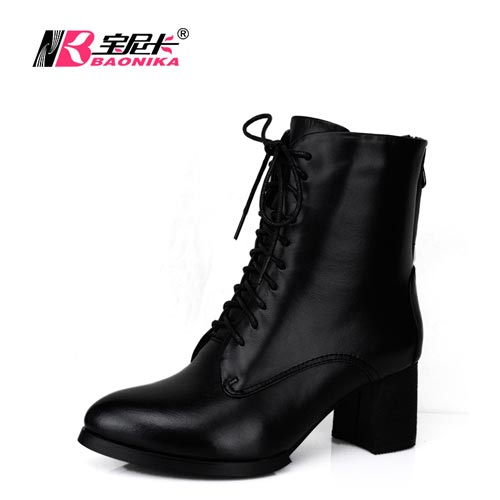 宝尼卡秋冬中跟短靴圆头粗跟女鞋马丁靴真皮女靴