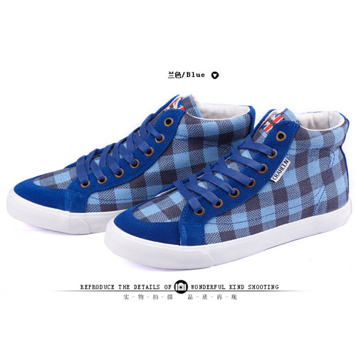 卡翰春夏高帮格纹帆布鞋 年轻靓女时尚板鞋 圆头系带平底流行女鞋