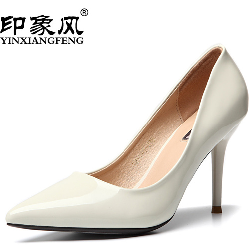 印象风新款单鞋女超高跟鞋漆皮尖头细跟糖果色性感女鞋