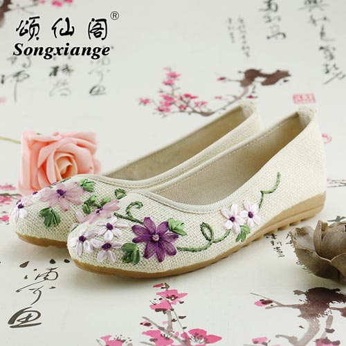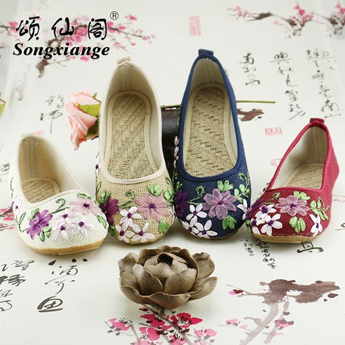颂仙阁绣花鞋亚麻鞋垫单鞋布鞋牛筋底女鞋平跟休闲鞋妈妈鞋