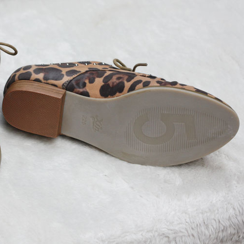 馨宠儿系带牛津鞋真皮羊皮英伦风豹纹尖头牛筋底布洛克低跟单鞋