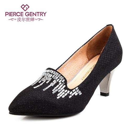 皮尔世绅春季水晶亮钻浅口尖头高跟鞋锥形跟新款单鞋