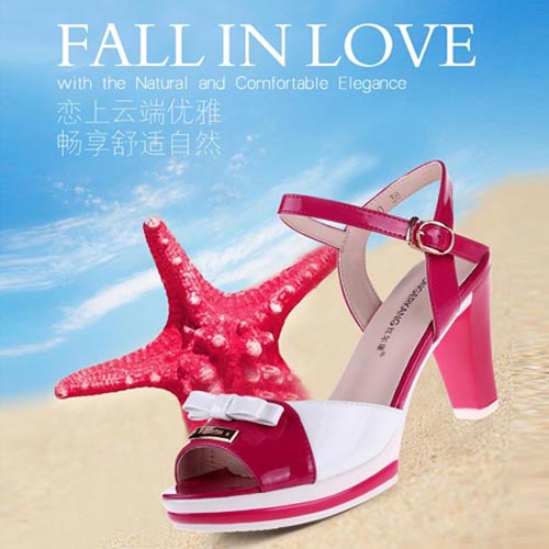 红尔康2014夏季新款 时尚个性撞色女鞋 漆皮高跟凉鞋鱼嘴粗跟女鞋