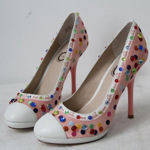 CAI 捷希 水钻高跟圆头浅口单鞋 细跟时尚欧美女鞋小码女鞋