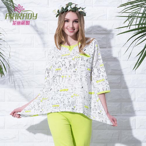 花丛丽影2015新款女春夏针织纯棉睡衣七分袖长裤休闲家居服套装