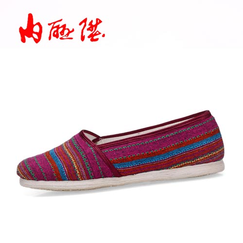 内联升布鞋 千层底加密民族风方口条纹女老字号北京布鞋
