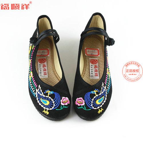 福顺祥老北京布鞋民族风高帮绣凤一字口舒适软底绣花鞋