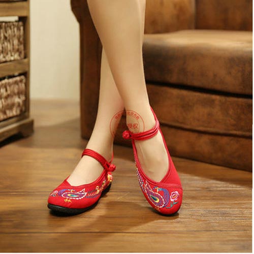 福顺祥老北京布鞋民族风凤凰牡丹刺绣脚腕绑带舒适绣花鞋