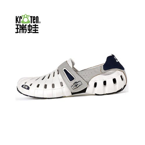 Kroten(瑞蛙)至今已走过26年的历程,品牌内涵和外延不断丰富和扩展,产品已从单一的水陆两用鞋延伸至户外运动、体育休闲、商务休闲等多个系列。Kroten每款鞋均有自己的个性和特色,比如体育休闲3209系列特有的嵌入式空气循环系统,干燥、新鲜的空气从鞋底的小孔进入鞋体后,能够在整个鞋体内部循环,最后经鞋面的网孔排出,这一设计已获得专利。再加上透气、轻便、动感十足的网布鞋面、Prolite专利的内衬材料、纳米活性炭复合材质的鞋垫,这款鞋不仅能使双足长时间保持舒适干爽,同时有效防止异味产生,这是其他品牌无法比拟的。