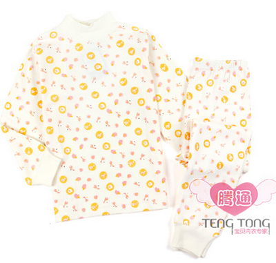 萱泽 全棉 胸花棉毛套 纯棉 半高领 男童女童内衣