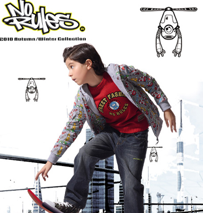 “NO RULES”(中文名称“诺路斯”)是来自澳大利亚的品牌,创立于1994年,产品涉及服装、背包、帽子、玩具、滑板、头盔、护具等与儿童生活有密切关系的各个大类。在北美、欧洲、日本和澳大利亚共计设有大小专柜、门店2000余家,是一个专为七至十四岁孩子服务的国际化品牌。 “NO RULES”(中文名称“诺路斯”)以现今国外流行的滑板等极限运动为背景,崇尚“自然、运动、健康”的生活态度,提倡“无障碍成长”的生活方式,鼓励孩子健康游戏,个性发展。 整体定位: 崇尚自然、健康的生活态度,以个性和健康运动为前提培养孩子全面成长的时尚家庭 产品定位: 以欧美休闲童装风格为主,结合中国孩子的穿着特点,并以众多的周边产品为辅助 价格定位: 中档的价格定位,立足于普通大众可以消费的产品价格,为大多数家庭所接受的时尚童装品牌 终端定位: 以专卖店为主,百货专柜为辅的终端渠道 宣传定位: 强调自然、健康的成长过程,强调孩子需要个性化发展的需要,强调欧美式教育的优势之处 市场定位: 目标消费--目标消费群:孩子7-14岁,母亲30-45 主力消费群:孩子7-12岁,母亲30-40 收入特征--家庭年收入6万-20万 行为特征--追求时尚,崇尚自然、舒适的生活态度,有一定的品牌要求且讲求实用主义