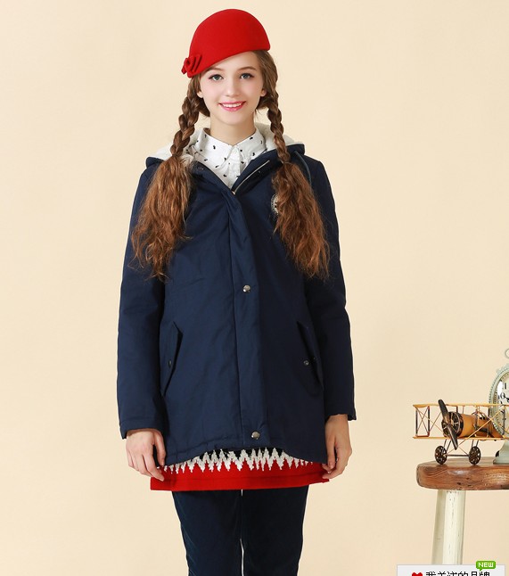 孕之彩 孕妇可爱棉衣 冬装 连帽保暖外套 淑女范