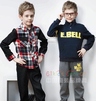 “ELEPHANT BELL”(吉象贝儿)童装产品线丰富多样,涵盖中大童、内衣、配饰等数十个品类,休闲背包、袜子、帽子、围巾、儿童内衣、短袖T恤、长袖T恤、外套、棉衣、羽绒服、马甲、短裤、单长裤、夹长裤、棉长裤、短裙、连身裙/裤、毛织产品、套装等。