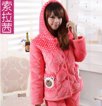 索拉茜2013冬季新款女士长袖加厚夹棉珊瑚绒睡衣
