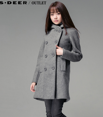 sdeer圣迪奥女装冬保暖羊毛压缩中长款毛呢大衣