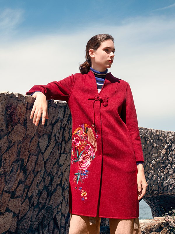 秋冬装以针织套装、风衣、棉衣、羽绒服为主;面料主要采用棉、天丝、羊毛等天然面料;采用刺绣、手工钉珠、立体绢 花等手法,与冬季唯美的大自然景象融为一体,演绎都市成熟女性的艳丽、妩媚、坚韧……