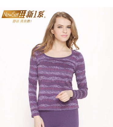 新一系 KK女士潮流提花薄款保暖内衣套装 女秋衣