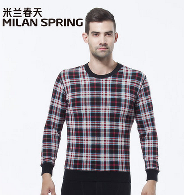 米兰春天 加绒加厚保暖内衣 英伦彩格男士保暖套