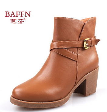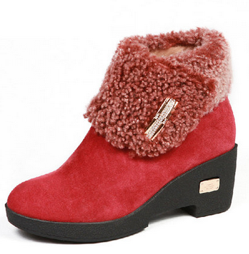 圣柏俐 真皮坡跟短靴 高跟羊毛短筒靴 女靴子 牛